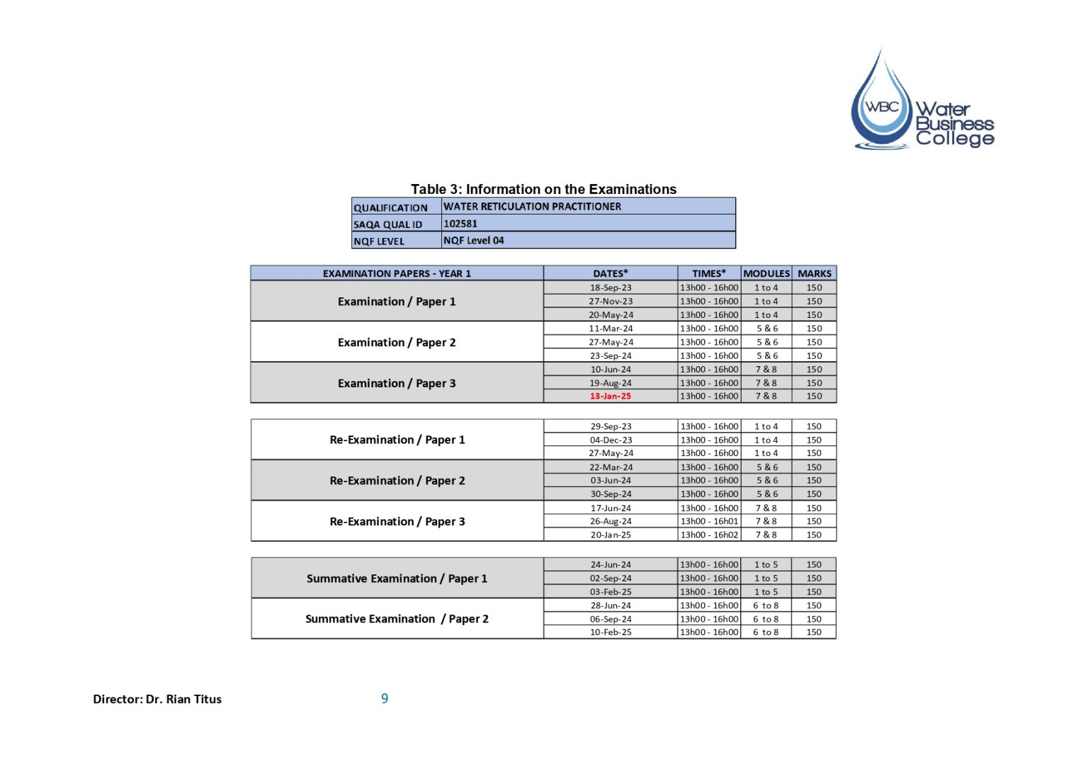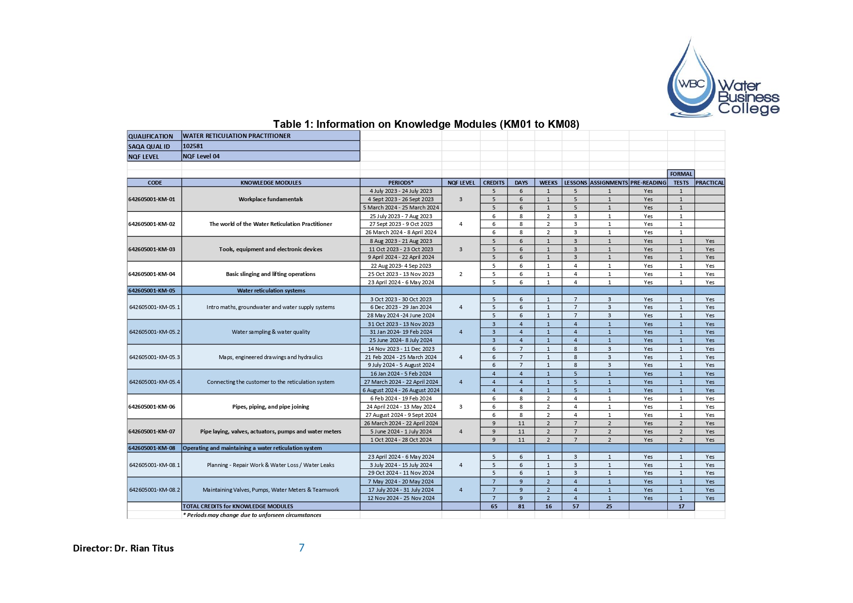 Interested learners and practitioners must familiarise themselves with information on, and the structure of, the 2 year occupational qualifications on the Water Business College (WBC) website.